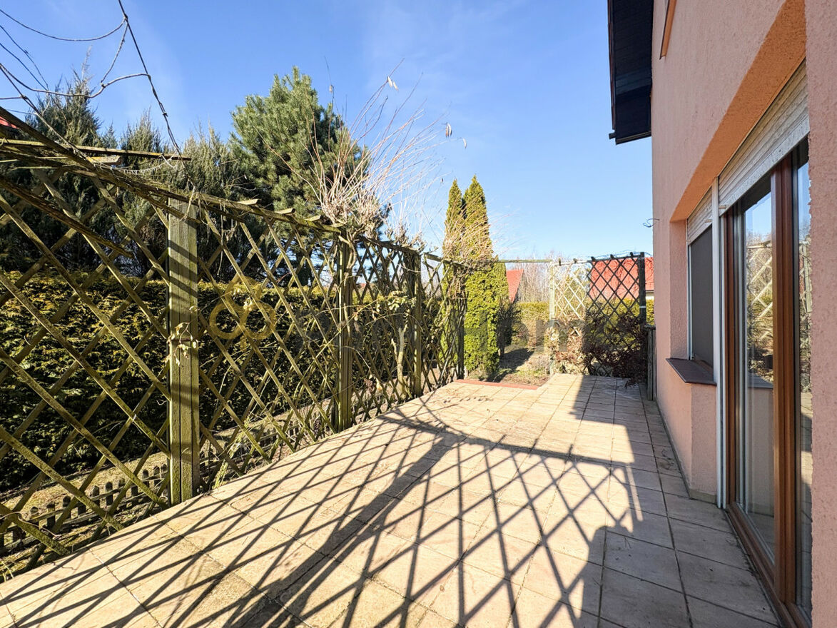 bezpośrednie wyjście z salonu na duży taras z widokiem na ogród